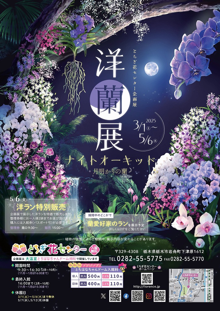 また、企画展「洋蘭展 ナイトオーキッド 月明かりの蘭」も開かれています。