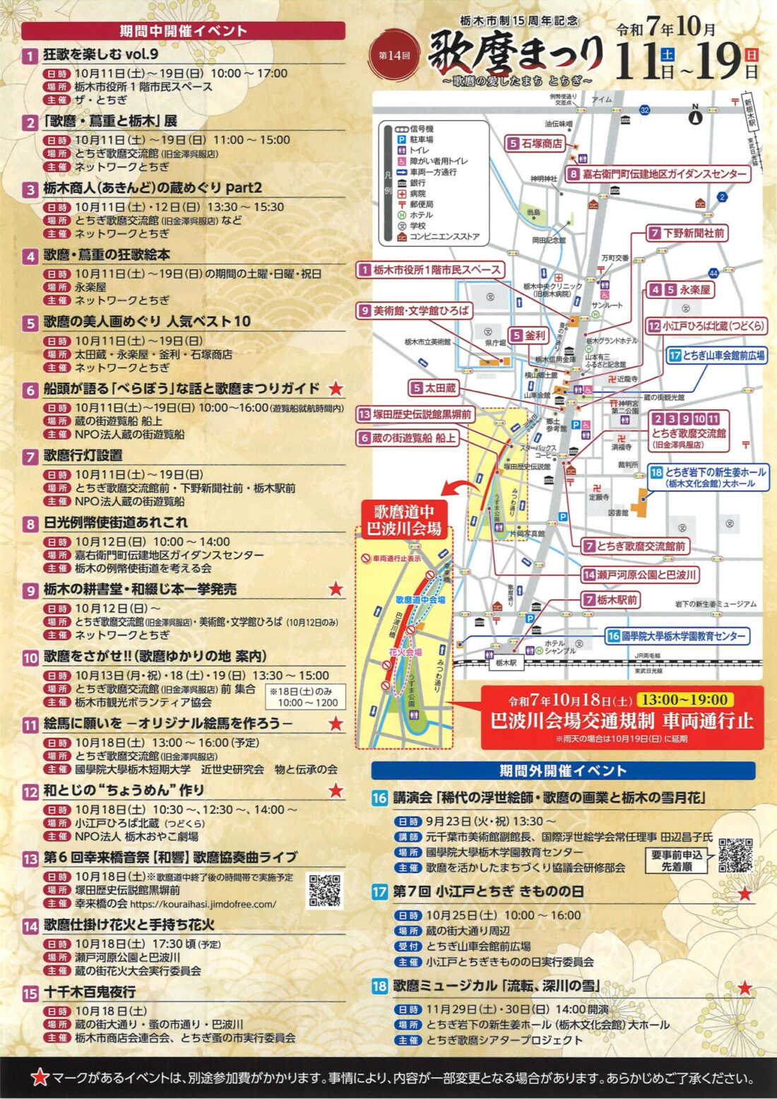 栃木市のとちぎ蔵の街大通りを中心に、10月11日(土)~19日(日)までの期間に「歌麿まつり~歌麿の愛したまち とちぎ~」が開催されます。