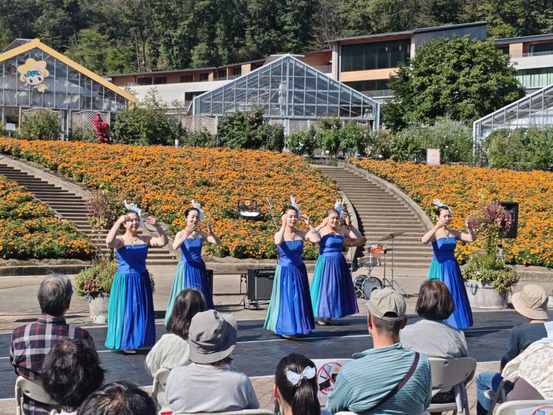 穏やかな日差しに包まれた秋の午後。とちぎ花センターの大花壇前広場では、色とりどりの衣装に身を包んだダンサーたちが登場し、観客の目を釘付けにしました。