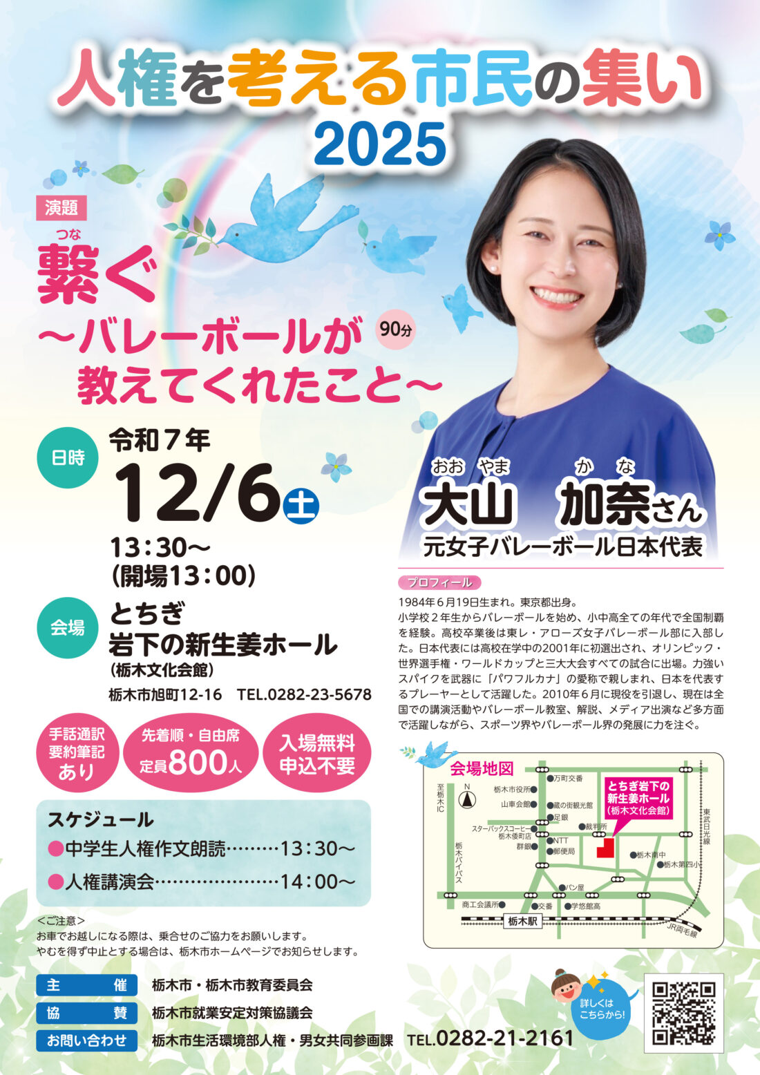 栃木市では、12月6日(土)に「人権を考える市民の集い2025」が開催されます。