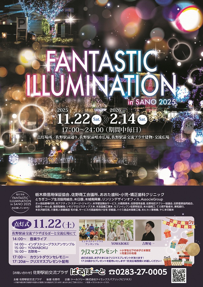 佐野市では現在、恒例のイルミネーションイベント「FANTASTIC ILLUMINATION in SANO 2025」が開催されています。