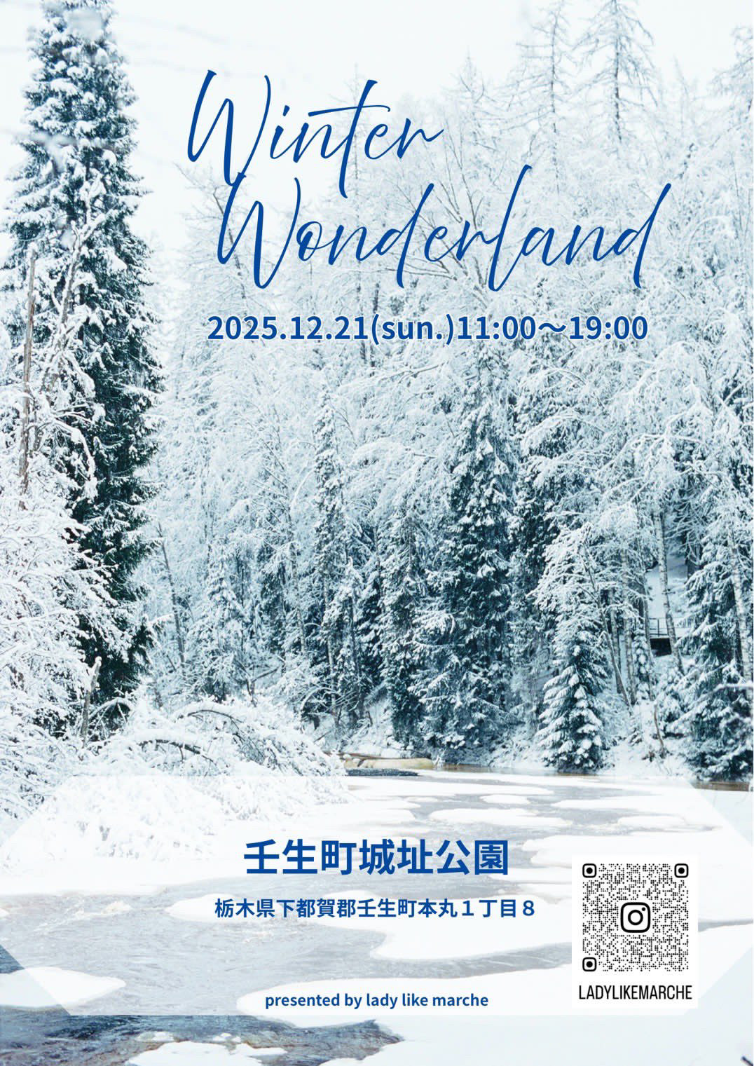 イベント2025.12.13【壬生町】「Winter Wonderland(ウィンターワンダーランド)」が12/21(日)に開催されます! ポスト シェア 送る Pocket 広告 壬生町城址公園(壬生町本丸1-8)では、12月21日(日)に「Winter Wonderland(ウィンターワンダーランド)」が開催されます。 当日、会場ではクリスマスならではの特別なイベントが予定されているようです。開催時間は午前11時~午後7時までとなっておりますので、都合の合う方はお出かけしてみてください♪♪ 詳細は、こちらからご確認ください! 広告広告