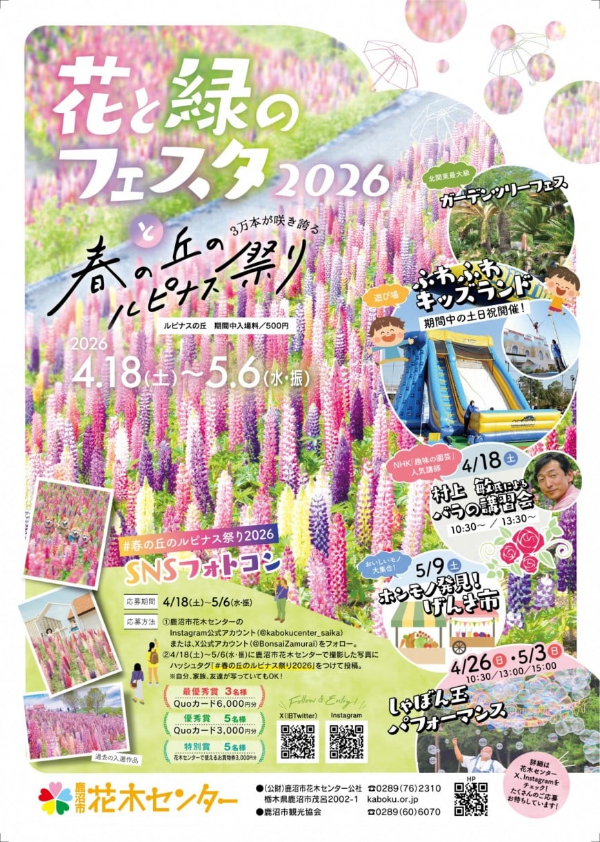 春にふさわしい植物を一同に集めた恒例のイベント「花と緑のフェスタ2026」が4月18日(土)、鹿沼市茂呂の鹿沼市花木センターで始まりました。
